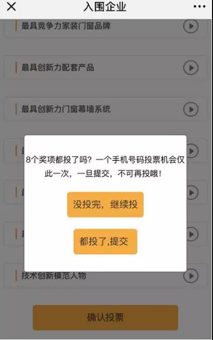 每個手機號只能投1次,可同時對多個獎項的候選名單投票。